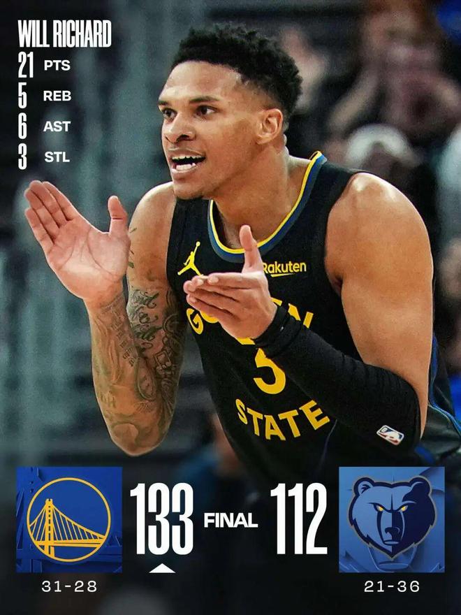 理查德21分 勇士8人上双大胜灰熊