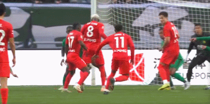 第42分钟,张玉宁头球解围不远,克劳德左脚扫射击中立柱。